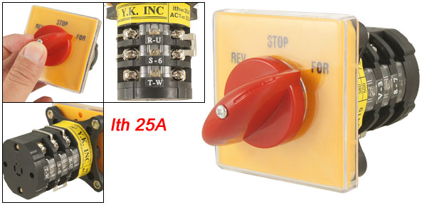 Product Name Cam Switch Model No. T-16EXF64D-3 Voltage & Power AC220V, 3.7kW AC380V, 5.5kW AC500V, 7.5kW AC1 20A Ith 25A Terminals Quantity 10 Installing Holes Dia 3.8mm / 0.150" Installing Size 48 x 48mm / 1.90" x 1.90"(L*W) Overall Size 64 x 64 x 100mm / 2.5" x 2.5" x 3.9" (L*W*H) External Material Plastic Color Red, Black & Yellow Net Weight 171g Package Content 1 x Universal Switch - Reviews