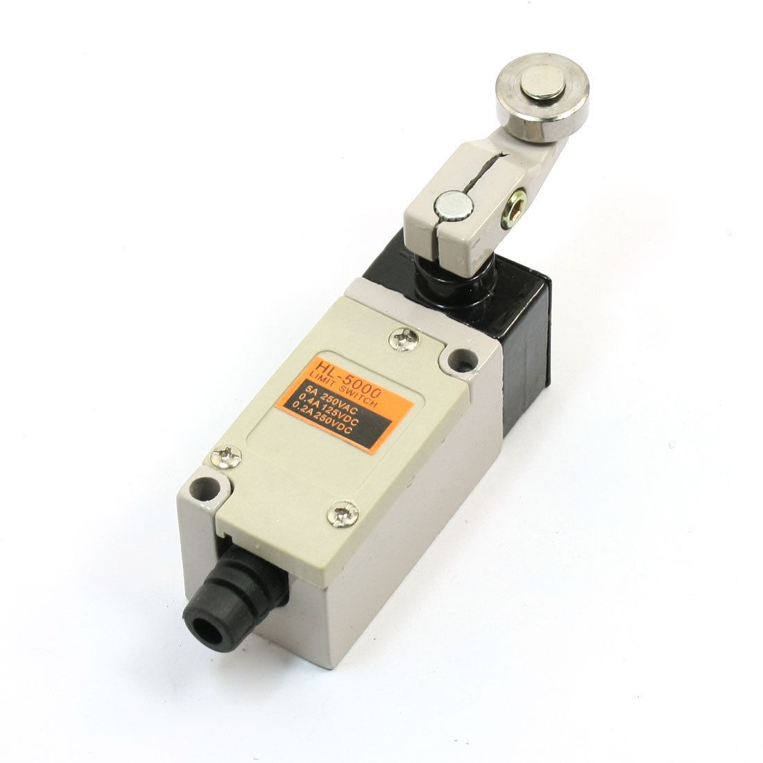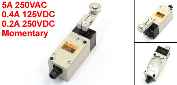 Product Name Limit Switch Model No. HL-5000 Actuator Action Momentary Actuator Type Rotary Roller Lever Contact Type 1NC + 1NO Rating 5A 250VAC