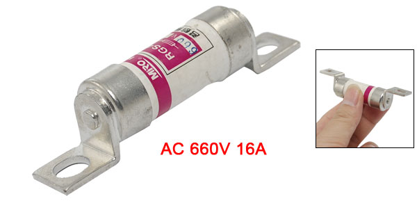 Product Name Bolt Connected Fuse Type RGS4 GSG Material Metal Rated Voltage 660V Rated Current 16A Main Color Silver Tone Total Size 16 x 77mm/ 0.6" x 3" (D*L) Hole Size 9 x 6.5mm/ 0.35" x 0.25"(L*W) Weight 33g Package Content 1 x Bolt Connected Fuse - Reviews