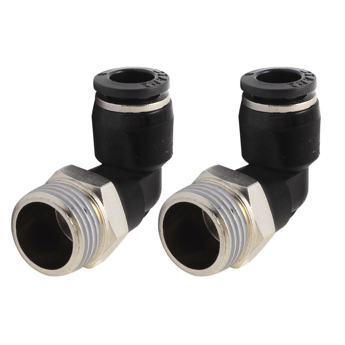 Right Angle 3/8" PT Male Thread to 8mm Hole Pneumatic Quick Fitting 2 Pcs