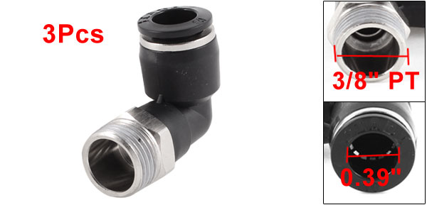 Right Angle 3/8" PT Male Thread to 10mm Hole Pneumatic Quick Fitting 3 Pcs