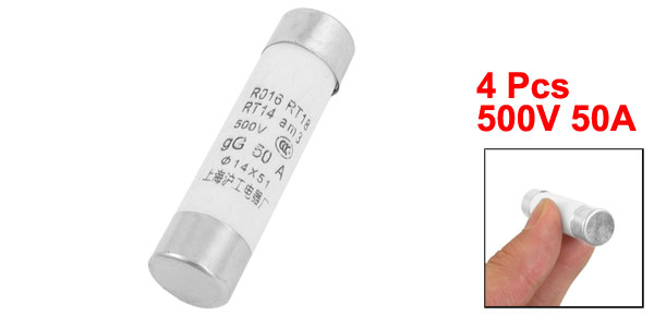 RO16RT13RT14am3 14x51mm 500V 50A Ceramic Cylindrical Fuse Links 4 Pcs