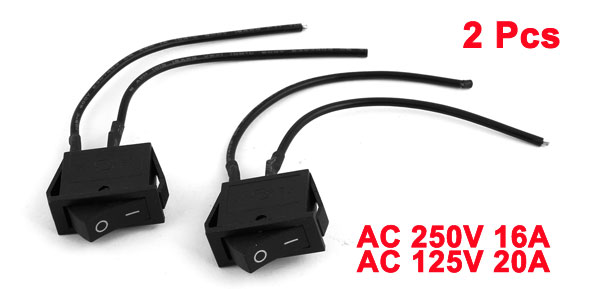 Rocker Switch AC 250V/16A 125V/20A w Wire for Car Electronic Power Control 2 Pcs