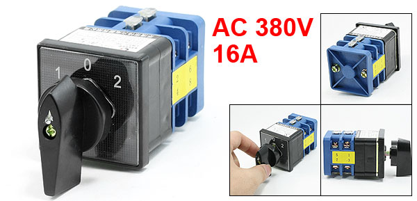 Product Name Universal Switch Model No. LW12-16YH3/3 Voltage AC 380V Ith AC 16A AC 21, AC4 16A AC23, AC3 12A AC11 6A Positions 3(1-0-2) Terminals Number 8 Bottom Size 4.5 x 4.5cm/ 1.7" x 1.7"(L*W) Overall Size 4.5 x 4.5 x 10cm / 1.3" x 1.3" x 4" (L*W*H) External Material Plastic Color Blue, Black Net Weight 204g Package Content 1 x Universal Switch - Reviews