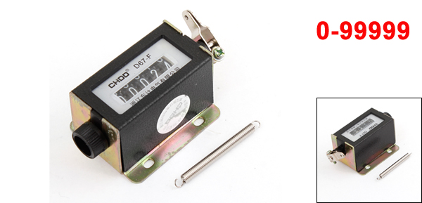 Product Name Pull Counter Digit Display 5 Range 0-99999 External Material Metal Color Black Total Size 7.8 x 4.5 x 3.1cm/ 3.1'' x 1.8'' x 1.2'' (L*W*T) Spring Size 50 x 4mm/ 2" x 0.16"(L*D) Net Weight 85g