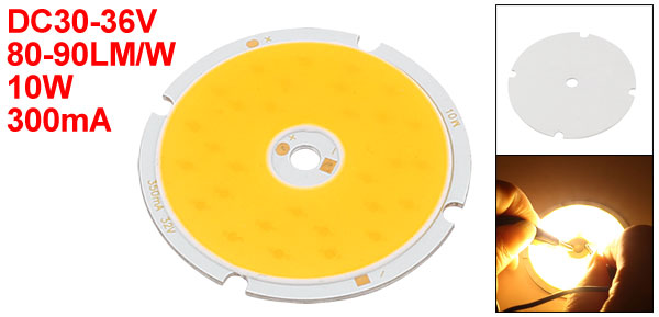 Product Name COB LED Lamp Beads Rated Voltage DC30-36V Luminous Flux 80-90LM/W Color Temperature 2800-3000K Power 10W Current 300mA Light Color Warm White Material Aluminum Color Silver Tone, Orange Diameter 50mm/ 2" Luminous Surface 44mm/ 1.7"(Diameter) Weight 9g Package Content 1 x COB LED Lamp Beads - Reviews