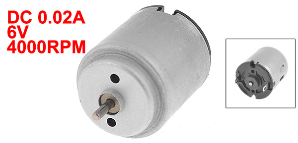 Product Name 260 DC Motor Rated Voltage DC 6V Rated Current 0.02A Speed 4000RPM Shaft Diameter 2mm / 0.078" Shaft Length 7mm / 0.275" Body Diameter 24mm / 0.944" Total Length 40mm / 1.574" Main Color Silver Tone Material Metal Weight 30g Package 1 x 260 DC Motor - Reviews