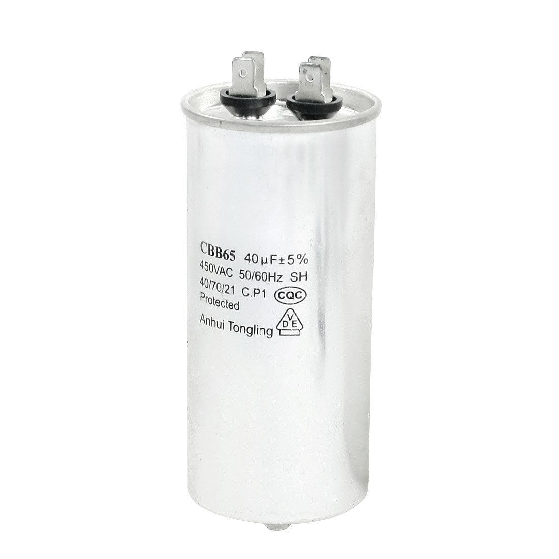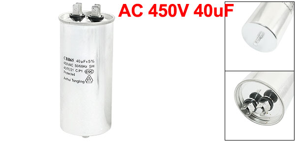 Product Name Motor Capacitor Housing Material Metal Dielectric Material Metallized Polypropylene Film Model CBB65 Capacitance 40uF Tolerance ±5% Rated Voltage 450VAC Frequency 50/60Hz Body Size 5.2 x 11cm/ 2.0" x 4.3"(D*H) Screw Thread Diameter 8mm/0.3" Operating Temperature 40/70/21 Color Silver Tone Net Weight 204g Package Content 1 x Motor Capacitor - Reviews