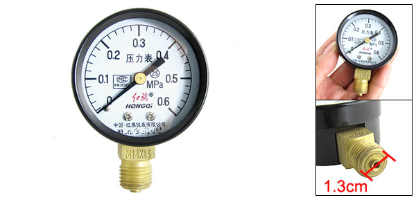 Product Name Pressure Gauge Range 0-0.6MPa Total Size 5.1 x 2.7cm/2'' x 1.1'' (D * H) Inlet Thread Dia 1.3cm/0.51'' External Material Metal Color Black, Gold Tone Net Weight 87g Package Content 1 x Pressure Gauge Manometer - Reviews