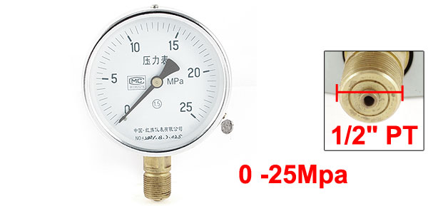 Product Name Pressure Gauge Pressure Intensity 0 -25Mpa Accuracy Class Class 1.5 Connector Type 1/2" PT Size 10 x 4.5cm / 3.94" x 1.8" (D*T) Dial Color As Picture Show Exterior Material Metal Net Weight 419g Package 1 x Pressure Gauge - Reviews