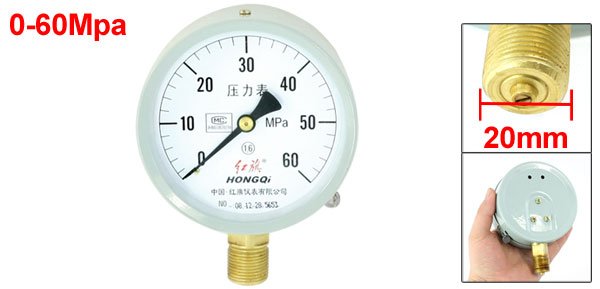 Product Name Pressure Gauge Model Y100-60 Scale Range 0-60Mpa Accuracy Class 1.6 Dial Size 10 x 4.5cm /4" x 1.8" (D*T) Thread Diameter 20mm / 0.79" External Material Metal Color Clear, Black Net Weight 418g Package Content 1 x Pressure Gauge - Reviews
