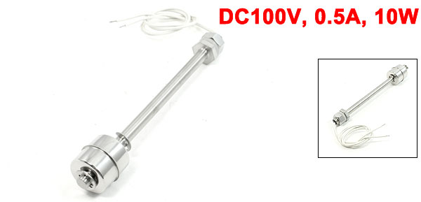 Product Name Water Level Sensor Float Ball Material Stainless Steel Float Body Material Stainless Steel Voltage, Current, Power DC100V, 0.5A, 10W Contacts NO + NC Max Breakdown Voltage/ Max Carry Current 220V 1.0A Max Contact Resistance 100mΩ Temperature Rating -10 to +85 Degree Float Ball Size 2.6 x 2.6cm / 1" x 1" (H*D) Screw Thread Diameter 9.5mm/ 0.37" Rod Diameter 8mm/ 0.3" Body Total Length 16.5cm/ 6.5" Cable Length 30cm/ 11.8" Color Silver Tone Weight 64g Package Content 1 x Water Level Sensor - Reviews
