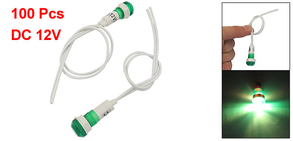 Product Name Indicator Light Voltage DC 12V Light Type Bulb Light Color Green Material Plastic, Electric Components Main Color White, Green Cable Length 19cm/7.48" Thread Diameter 9.5mm/0.37" Lamp Head Diameter 14mm/0.55" Overall Size 22 x 1.4cm/ 8.66" x 0.55" (L*D) Quantity 100±2% Pcs Net Weight 382g PakcageContent 100 Pcs x Indicator Light - Reviews
