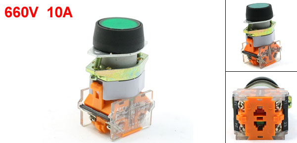 Product Name Push Button Switch Action Type Momentary Contact Type 1 NO 1 NC Ui 660V Ith 10A Terminals Quanlity 4 Pins Button Diameter 24mm/ 0.9" Fit Mounting Hole Dia 22mm/0.86" Size 61 x 35 x 3mm/ 2.4" x 1.4" x 1.2" (L*W*H) Cap Color Green Material Plastic, Electric Parts Weight 64g Package Content 1 x Push Button Switch - Reviews