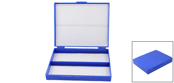Product Name 100 Slide Microscope Box Material Plastic Capacity 100 Slides Main Color Royal Blue Total Size 20 x 16 X 3cm/ 7.9" x 6.3" x 1.2"(L*W*H) Net Weight 202g Package Content