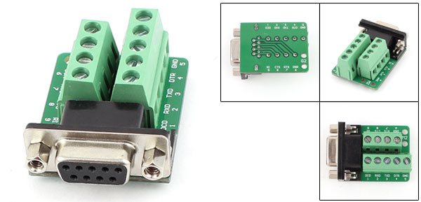 Product Name DB9 Adapter Total Size 45 x 31 x 18mm/1.8" x 1.2" x 0.71"(L*W*H) Fixing Hole Diameter 3mm Fixing Hole Center Distance 6mm/0.24" Material Metal, Electric Part Color Black, Green Weight 25g Package Content 1 x DB9 Adapter - Reviews