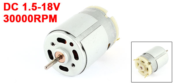 Product Name DC Motor Model RS380 Rated Voltage DC 1.5-18V Speed 30000RPM Shaft Size 15 x 2mm / 0.6" x 0.08"(L*D) Motor Body Size 38 x 28mm / 1.5" x 1.1" (L*D) Main Color Silver Tone Main Material Metal Weight 75g Package 1 x DC Motor - Reviews