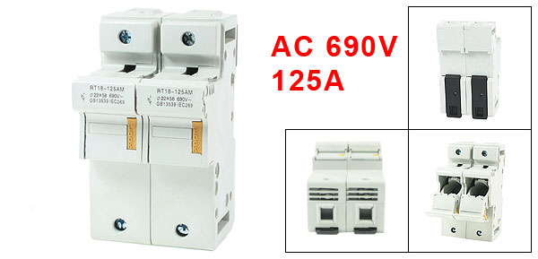 Product Name Fuse Holder Type RT18-125AM Fit Fuse Type 22 x 58mm / 0.9" x 2.3"(D*H)(Not Included Here) Rated Voltage AC 690V Rated Current 125A Poles Quantity 2P Mount Rail 35mm DIN Rail Overall Size(Approx) 12.5 x 7 x 7.6cm / 4.9" x 2.8" x 3"(L*W*H) Material Hard Plastic, Metal Color Gray Net Weight 367g Package Content 1 x Fuse Holder - Reviews