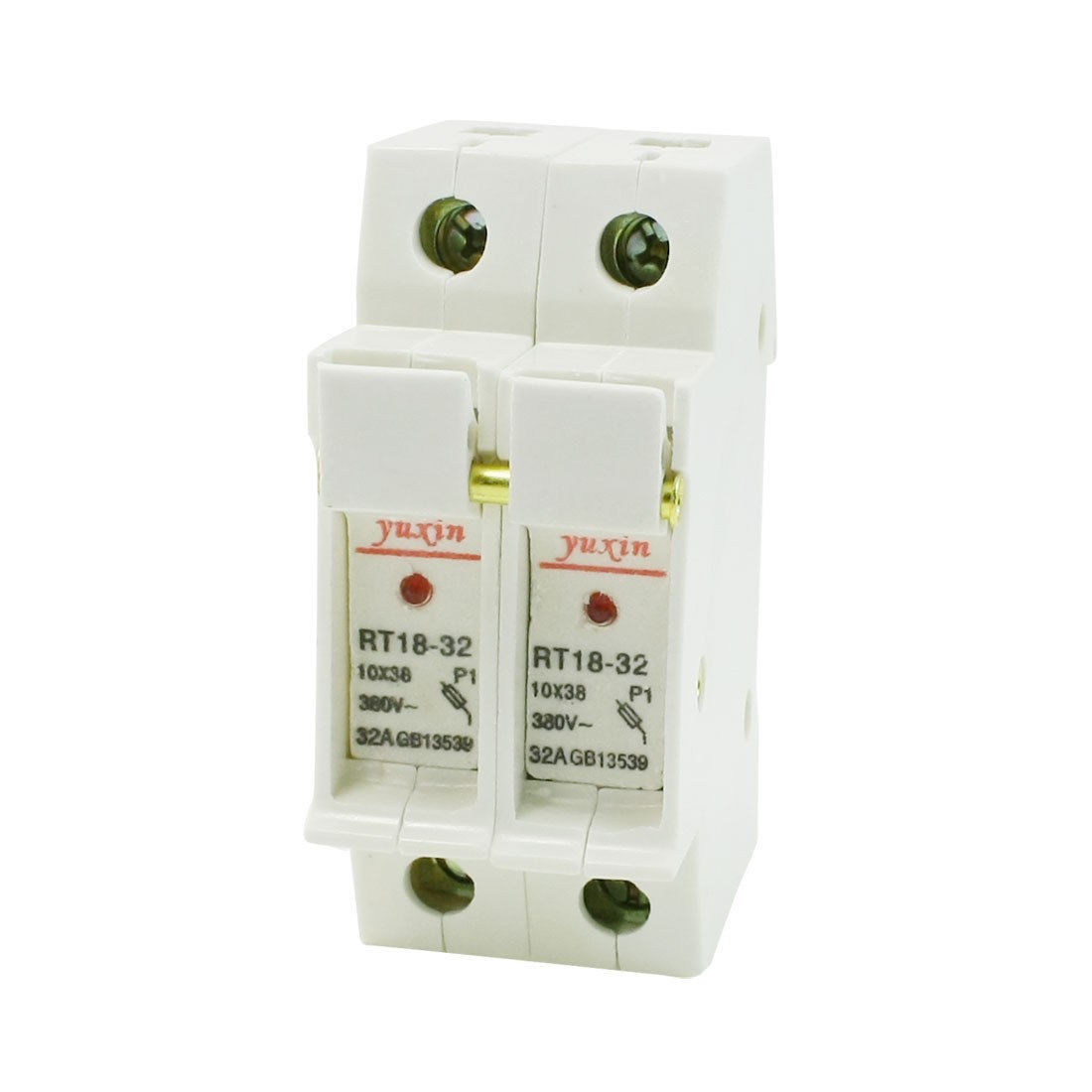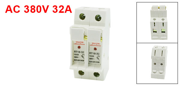 Product Name Fuse Holder Type RT18-32 Fit Fuse Type 10 x 38mm / 0.4" x 1.5"(D*H)(Not Included Here) Rated Voltage AC 380V Rated Current 32A Poles Quantity 2P Mount Rail DIN Rail Overall Size(Approx) 7.9 x 6.2 x 3.4cm / 3.1" x 2.4" x 1.3"(L*W*H) Material Hard Plastic, Metal Color White Net Weight 154g Package Content 1 x Fuse Holder - Reviews