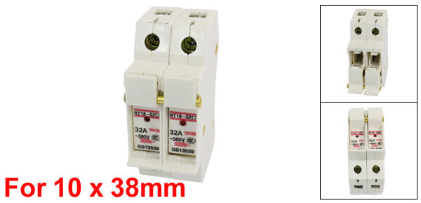 Product Name Fuse Holder Type RT18-32 Fit Fuse Type for 10 x 38mm(Not Included Here) Rated Voltage AC 500/380V Rated Current 32A Poles Quantity 2 Mounting Type 35mm DIN Rail Mount Overall Size(Approx) 8 x 6.2 x 3.3cm/3.15" x 2.4" x 1.3"(L*W*H)