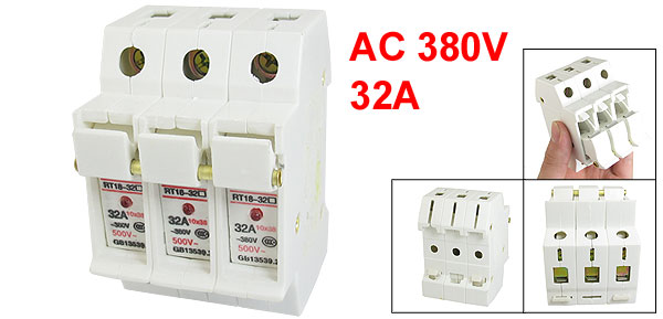 Product Name Fuse Holder Type RT18-32X Fit Fuse Type 10 x 38mm / 0.394" x 1.496"(D*H)(Not Included Here) Rated Insulation Voltage 500V Rated Voltage AC 380V Rated Current 32A Poles Quantity 3P Material Hard Plastic & Metal Color See the Picture Overall Size(Approx) 7.9 x 5.2 x 6.2cm / 3.1" x 2" x 2.4"(L*W*H)