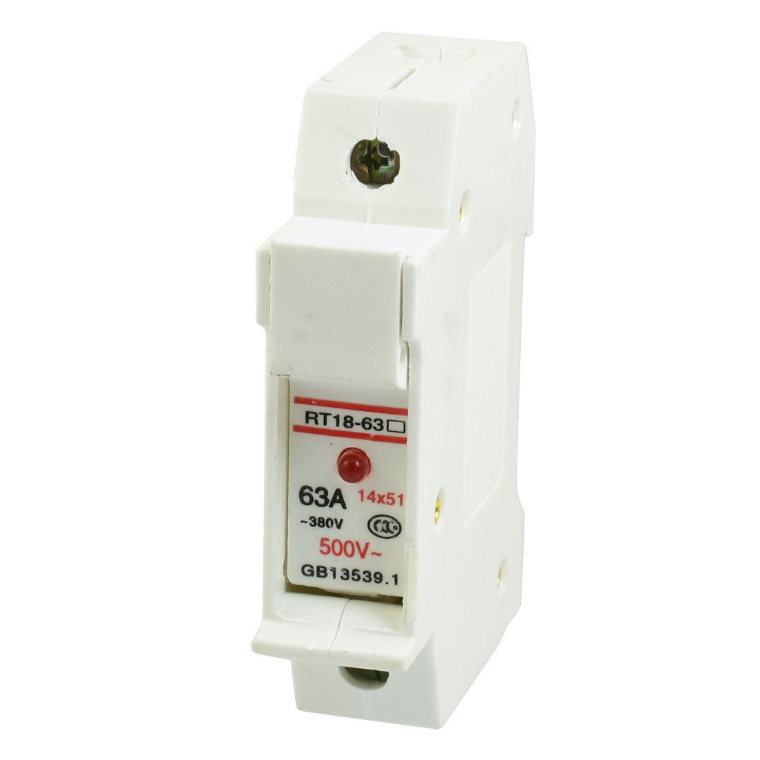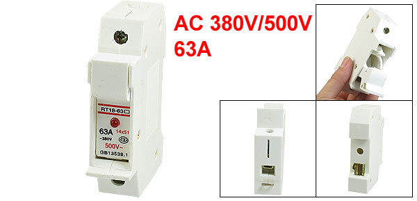 Product Name Fuse Holder Type RT18-63A/1P Fit Fuse Type 14 x 51mm / 0.551" x 2.008"(D*H)(Not Included Here) Rated Insulation Voltage 500V Rated Voltage AC 380V Rated Current 63A Poles Quantity 1 Mount Rail DIN Rail Overall Size(Approx) 10.2 x 2.4 x 7.5cm / 4" x 0.9" x 3"(L*W*H) Material Hard Plastic & Metal Color See the Picture Weight 175g Package Content 1 x Fuse Holder - Reviews