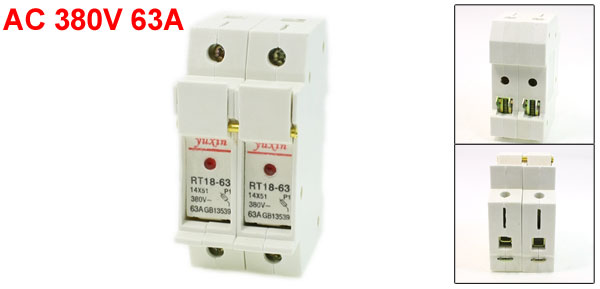 Product Name Fuse Holder Type RT18-63 Fit Fuse Type 14 x 51mm / 0.55" x 2"(D*H)(Not Included Here) Rated Voltage AC 380V Rated Current 63A Poles Quantity 2P Mount Rail DIN Rail Overall Size(Approx) 10.2 x 7.7 x 4.8cm / 4" x 3" x 1.9"(L*W*H) Material Hard Plastic, Metal Color White Net Weight 347g Package Content 1 x Fuse Holder - Reviews