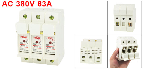 Product Name Fuse Holder Type RT18-63 Fit Fuse Type 14 x 51mm / 0.55" x 2"(D*H)(Not Included Here) Rated Voltage AC 380V Rated Current 63A Poles Quantity 3P Mount Rail DIN Rail Overall Size(Approx) 10.2 x 7.7 x 7.7cm / 4" x 3" x 3"(L*W*H) Material Hard Plastic, Metal Color White Net Weight 583g Package Content 1 x Fuse Holder - Reviews