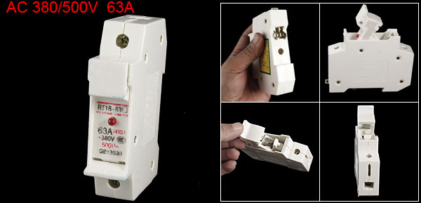 Product Name Fuse Holder Type RT18-63A/1P Fit Fuse Type 14 x 51mm / 0.551" x 2.008"(D*H)(Not Included Here) Rated Insulation Voltage 500V Rated Voltage AC 380V Rated Current 63A Poles Quantity 1 Material Hard Plastic & Metal Color See the Picture Overall Size(Approx) 10.2 x 2.4 x 7.5cm / 4" x 0.9" x 3"(L*W*H)