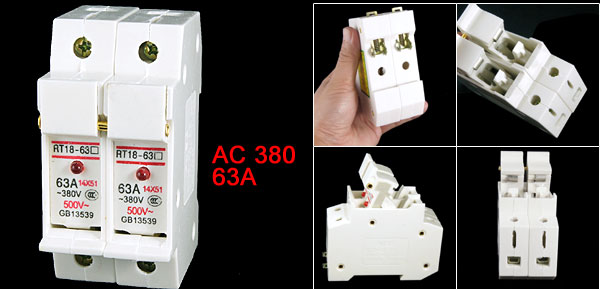 Product Name Fuse Holder Type RT18-63A Fit Fuse Type 14 x 51mm / 0.551" x 2.008"(D*H)(Not Included Here) Rated Voltage AC 380 / 500V Rated Current 63A Poles Quantity 2P Material Hard Plastic & Metal Color See the Picture Overall Size(Approx) 7.9 x 3.4 x 6.2cm / 3.1" x 1.3" x 2.4"(L*W*H)