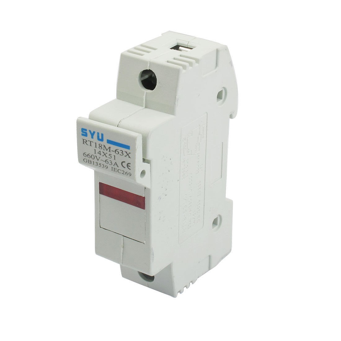 Product Name Fuse Holder Model No. RT18-63X Fuse Link Rated Voltage AC 660V Fuse Link Rated Current 63A Fuse Holder Rated Current 63A Rated Insulation Voltage(Ui) 500V Fuse Holder Ue AC 380V Poles Quantity 1P Fit for DIN Rail 35mm Fit for Fuse Link Size 14 x 51mm/ 0.6"x 2"(D*L) Total Size 9.5 x 2.6 x 6.7cm/3.7" x 7" x 2.6"(L*W*T) External Material Plastic Main Color Gray White Net Weight 101g Package Content 1 x Fuse Holder - Reviews