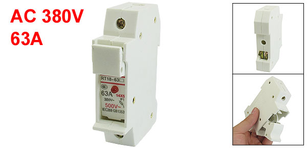 Product Name Fuse Holder Model No. RT18-63X Fuse Link Rated Voltage AC 660V Fuse Link Rated Current 63A Fuse Holder Rated Current 63A Rated Insulation Voltage(Ui) 500V Fuse Holder Ue AC 380V Poles Quantity 1P Fit for DIN Rail 35mm Fit for Fuse Link Size 14 x 51mm/ 0.6"x 2"(D*L) Total Size 10.2 x 8 x 2.5cm/4" x 3.1" x 1"(L*W*T) External Material Plastic Main Color White Net Weight 187g Package Content 1 x Fuse Holder - Reviews