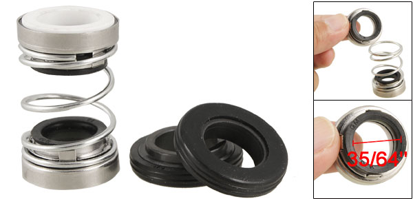 Product Name Mechanical Seal Internal Diameter 14mm/35/64'' Overall Size 53 x 28mm/2.1'' x 1.1'' (H*D) Material Carbon, Rubber, Metal Color Black, White, Silver Tone Net Weight 25g Package Content 1 x Mechanical Seal - Reviews