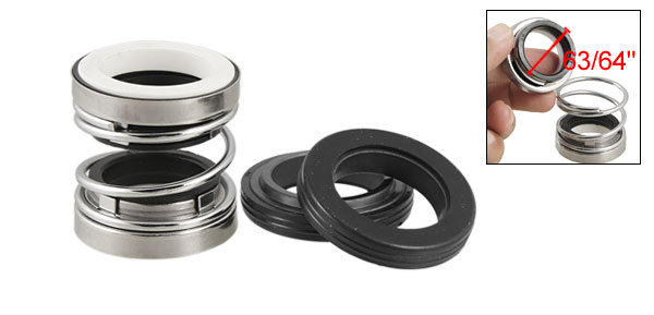 DetailsRubber Bellow 63/64" Dia Mechanical Seal for Pump Shaft  Product Name Mechanical Seal Internal Diameter 25mm/63/64'' Overall Size 41 x 38mm/1.6'' x 1.5'' (H*D) Ring Size 41 x 8mm/1.6'' x 0.3'' (D*H) Material Carbon, Rubber, Metal Color Black, White, Silver Tone Net Weight 69g Package Content 1 x Mechanical Seal