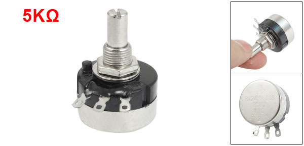 Product Name Carbon Potentiometer Model RV24YN Technology Carbon Composition Resistance Value 5K ohm Tolerance 5% Turn Number Single Turn Terminals Number 3 Features Round Shaft Body Size 25 x 14mm / 1" x 0.55"(D * H) Screw Thread Dia. 8.8mm / 0.35" Shaft Diameter 6mm / 0.24" Shaft Length 10mm / 0.4" Total Length 34mm / 1.3" Color Black, Silver Tone Net Weight 18g Package Content 1 x Carbon Potentiometer - Reviews