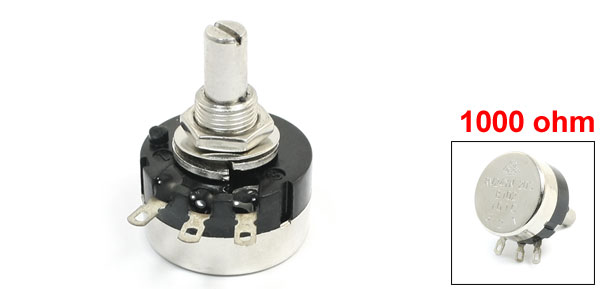 Product Name Potentiometer Model RV24YN20S Technology Carbon Composition Resistance Value 1000 ohm Turn Number Single Turn (Type B) Adjustment Type Top Adjustment Features Round Shaft Terminals Number 3 Body Size 24 x 13mm /0.95" x 0.5"(D * H) Screw Thread Dia. 8.6mm / 0.33" Shaft Diameter 6mm / 0.24" Shaft Length 10mm / 0.4" Total Length 33mm / 1.3" Color Black, Silver Tone Net Weight 20g Package Content 1 x Carbon Potentiometer - Reviews
