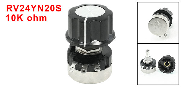 Product Name Carbon Potentiometer Model RV24YN20S Technology Carbon Composition Resistance Value 10K ohm Tolerance 5% Turn Number Single Turn Terminals Number 3 Features Round Shaft Potentiometer Body Size 24 x 14mm / 0.9" x 0.55"(D * H) Potentiometer Total Heigth 34mm/1.3" Screw Thread Dia. 9mm / 0.35" Shaft Diameter 6mm / 0.24" Shaft Length 10mm / 0.4" Rotary Knob Size 15 x 27mm/0.6" x 1.1"(H*Max.D) Color Black, Silver Tone Net Weight 24g Package Content 1 x Carbon Potentiometer w Knob - Reviews