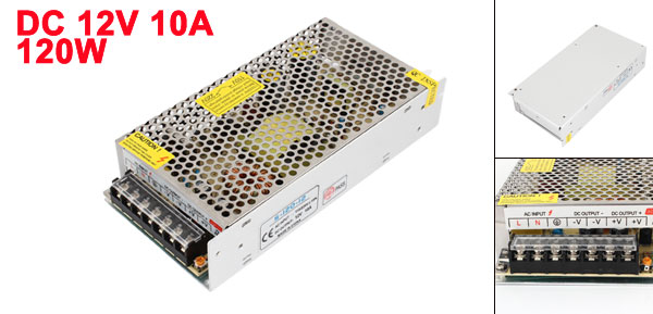 Item Name Switching Power Supply Model No. S-120-12 Input AC 110/220V +/-15% DC Output DC 12V,10A Power 120W Terminal Quantity 7 Total Size 20 x 10 x 4cm/ 8" x 4" x 1.6" (L*W*T) Case Material Metal Main Color Silver Tone Net Weight 444g Package Content 1 x Switching Power Supply - Reviews