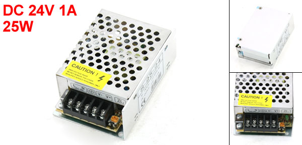 DetailsS-25-24 Aluminum Housing Output DC 24V 1A 25W LED Power Supply  Product Name LED Switching Power Supply Model S-25-24 Input AC 110/220V±15% Output DC 24V, 1A Power 25W Body Size 8.5 x 6 x 3.3cm/ 3.3" x 2.4" x 1.3" (L*W*H) External Material Aluminum External Color Silver Tone Weight 118g Package Content 1 x LED Switching Power Supply