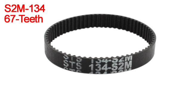 DetailsS2M-134 67 Teeth 6mm Width Black Rubber Cogged Industrial Timing Belt  Product Name Timing Belt Type S2M-134 Number of Teeth 67 Pitch 2mm Belt Width 6mm / 0.24" Belt Girth 134mm / 5.3" Material Rubber Color Black Weight 2g Package Content 1Pcs x Timing Belt