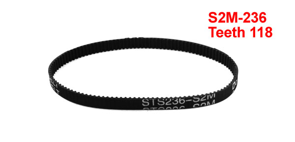 DetailsS2M-236 118 Teeth 6mm Width Black Rubber Cogged Industrial Timing Belt  Product Name Timing Belt Type S2M-236 Number of Teeth 118 Pitch 2mm Belt Width 6mm / 0.24" Belt Girth 236mm /9.3" Material Rubber Color Black Weight 4g Package Content 1Pcs x Timing Belt