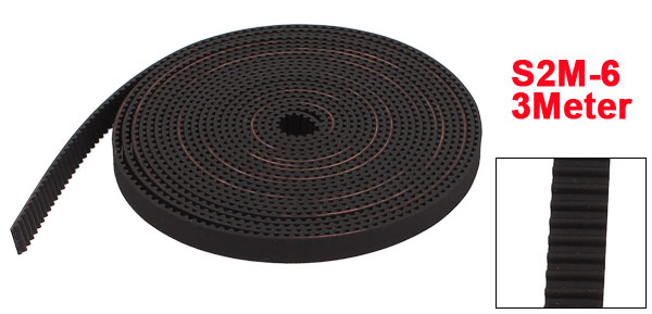 DetailsS2M 6mm Wide 2mm Pitch Open Loop Rubber Timing Belt Black 3Meters for 3D Printer  Product Name Timing Belt Model S2M-6 Teeth Pitch 2mm / 0.08" Belt Width 6mm / 0.24" Belt Length 3Meter/ 118.1"(9.8Ft) Shape Open Ended Material Rubber Color Black Weight 29g Package Content 1 x Timing Belt