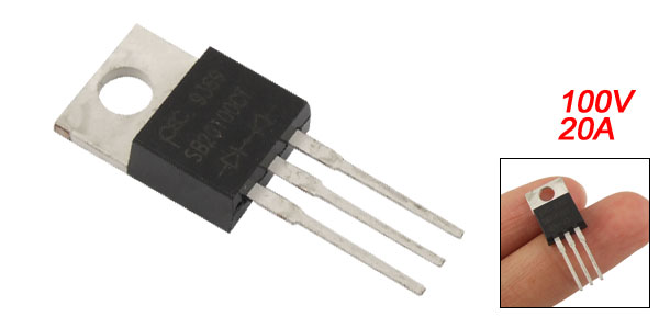 Product Name Schottky Barrier Rectifier Model No. SB20100CT VRRM 100V IF(AV) 20A Mounting Hole Diameter 3.5mm/ 0.137" Pin Size 14 x 1mm/ 0.55" x 0.039" ( L* Pitch) Total Size 28.7 x 10 x 4.5mm/ 1.13" x 0.39" x 0.18" (L*W*H) Weight 2.5g Package Content 1 x Schottky Barrier Rectifier - Reviews