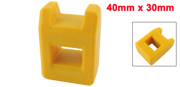 Product Name Magnetizer Demagnetizer Tunnel Size Magnetizer: 15 x 10mm / 0.6" x 0.4" (L*W) Demagnetizer: 15 x 8mm / 0.6" x 0.3" (L*max.W) Overall Size 40 x 30 x 20mm / 1.6" x 1.2" x 0.8" (L*W*H) Color Yellow Case Material Plastic Net Weight 20g Package 1 x Magnetizer Demagnetizer - Reviews