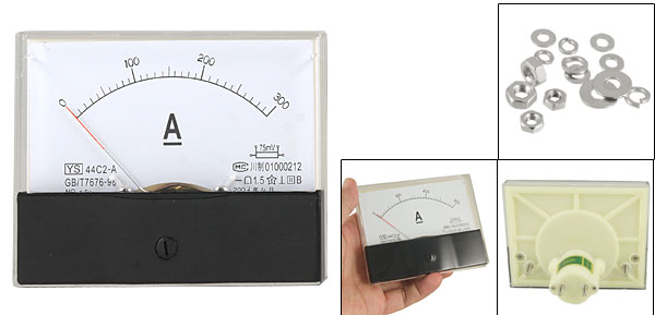 DC Current Panel Meter Model No. 44C2-A Scale Range DC 0~300A Accuracy Class 1.5 Back Screw Diameter 3mm/ 0.12" & 4mm/ 0.16" Panel Size 9.7 x 7.9 x 1.2cm/ 3.8" x 3.1" x 0.5" (L*W*T) Overall Depth 6.1cm/ 2.4" Color White & Black Main Material Plastic & Metal Net Weight 105g Package 1 x DC Current Panel Meter - Reviews