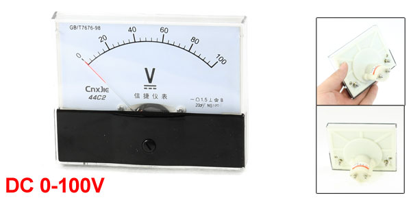 Product Name DC Voltage Panel Meter Scale Range DC 0-100V Accuracy Class 1.5 Material Plastic Color White, Clear, Black Back Screw Dia. 3.8 mm / 0.15" & 2.8 mm / 0.11" Panel Size 10 x 8 x 1.1 cm /4" x 3.1" x 0.4" (L*W*T) Overall Depth 6cm / 2.4" Weight 116g Package Content 1 x DC Voltage Panel Meter - Reviews