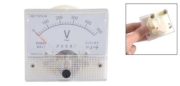 Product Name AC Voltage Panel Meter Scale Range AC 0-500V Accuracy Class 2.5 Material Plastic Color White, Clear, Beige Back Screw Dia. 3.8 mm / 0.15" & 2.8 mm / 0.11" Panel Size 6.3 x 5.5 x 1.1 cm / 2.5" x 2.2" x 0.4" (L*W*T) Overall Depth 6 cm / 2.36" Weight 69g Package Content 1 x AC Voltage Panel Meter - Reviews