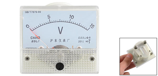 Product Name AC Voltage Panel Meter Scale Range AC 0-15V Accuracy Class 2.5 Material Plastic Color White, Clear, Beige Back Screw Dia. 3.8 mm / 0.15" & 2.8 mm / 0.11" Panel Size 6.3 x 5.5 x 1.1 cm / 2.5" x 2.2" x 0.4" (L*W*T) Overall Depth 6 cm / 2.36" Weight 69g Package Content 1 x AC Voltage Panel Meter - Reviews