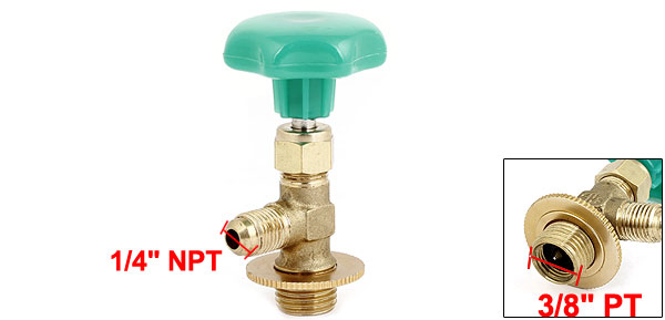 Product Name Can Tap Valve Fit for R134 Refrigerant Color Green,Blue, Gold Tone Material Metal, Plastic Side Thread Diameter 1/4" NPT(11mm) Bottom Thread Diameter Inner: 1/4" NPT (12.4mm)