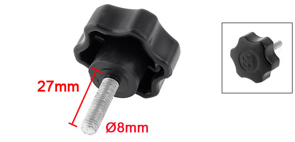 Product Name Clamping Knob Type Screw On Head Diameter 50mm / 1.9" Thread Length 27mm /1.06" Thread Diameter 8mm / 1/16"PT Total Height 60mm / 2.2" Material Metal & Plastic Color Silver Tone & Black Weight 41g Package Content 1 x Clamping Knob - Reviews